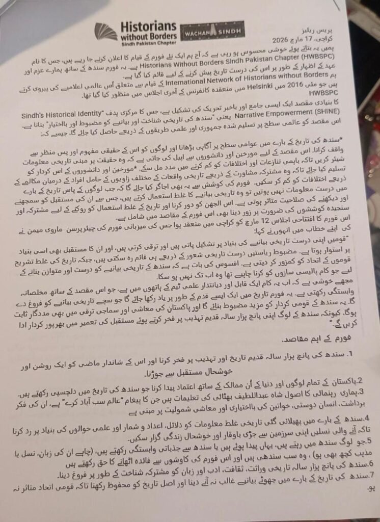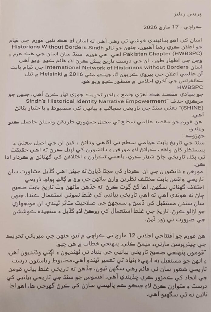 Press Release: Historians Without Borders Sindh Pakistan Chapter – PR01-17032026