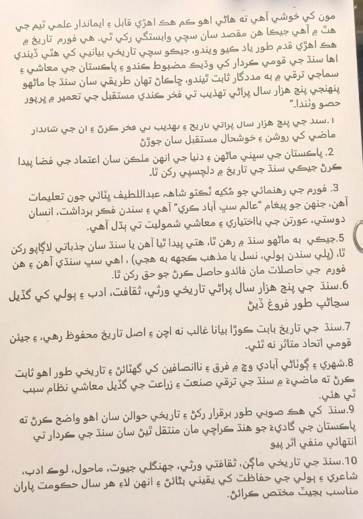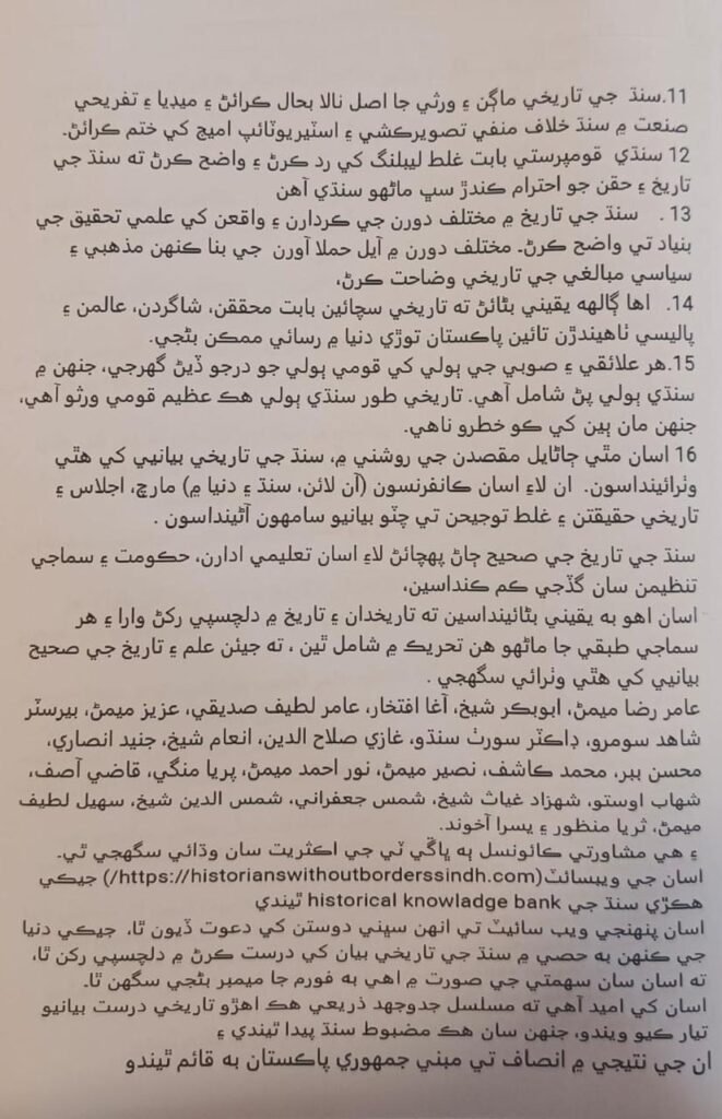 7. To ensure fake narratives on Sindh’s history do not prevail so that Sindh’s actual history is preserved, and Pakistan’s unity is not compromised.
